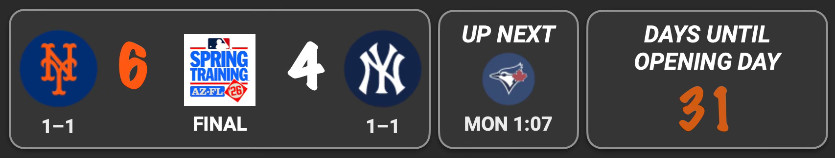 The first sight of a manicured diamond, Gary Cohen apologizing for the warmer Florida temperatures, the familiar ring of the SNY theme song. Those were the things that greeted Mets fans with a smile on Saturday. Everything after that was pretty much a dud. A reminder, along with the tonnage of snow we are receiving up north, that real baseball is still over a month away.