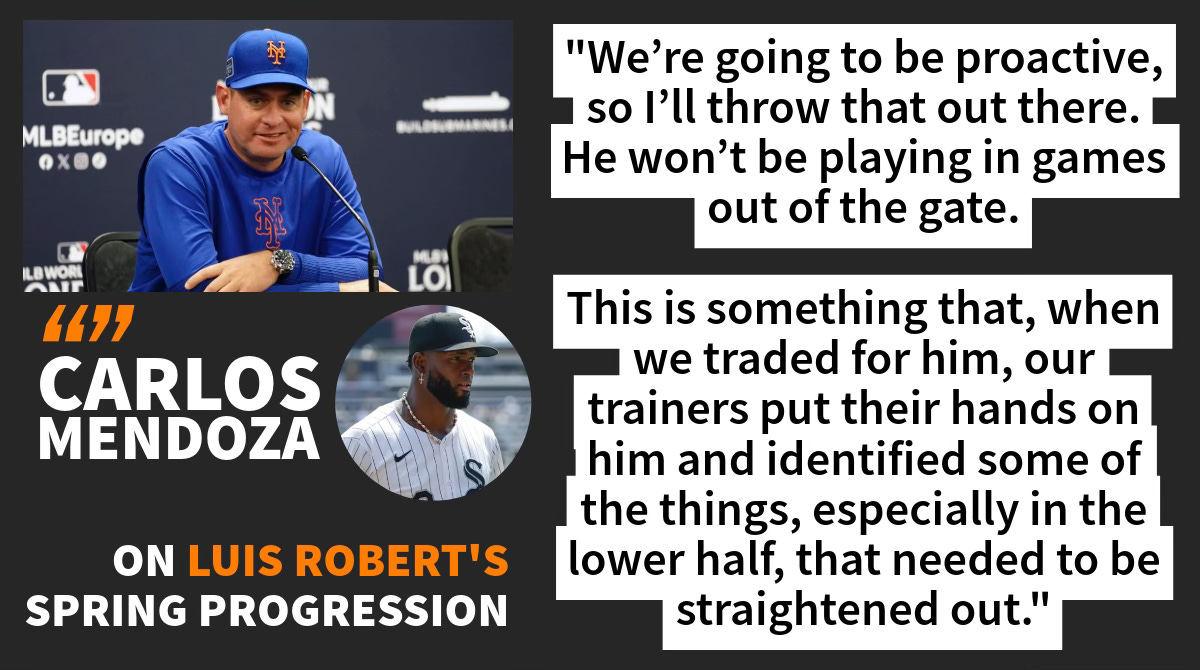 🔹 A PLAN FOR ROBERT: For Robert Jr., Mets’ trainers are working to strengthen his lower half in hopes they can help him avoid injuries he has had in the past. Robert missed 55 days last season from two separate IL stints for hamstring injuries. He lost 59 days due to a hip flexor the previous season.